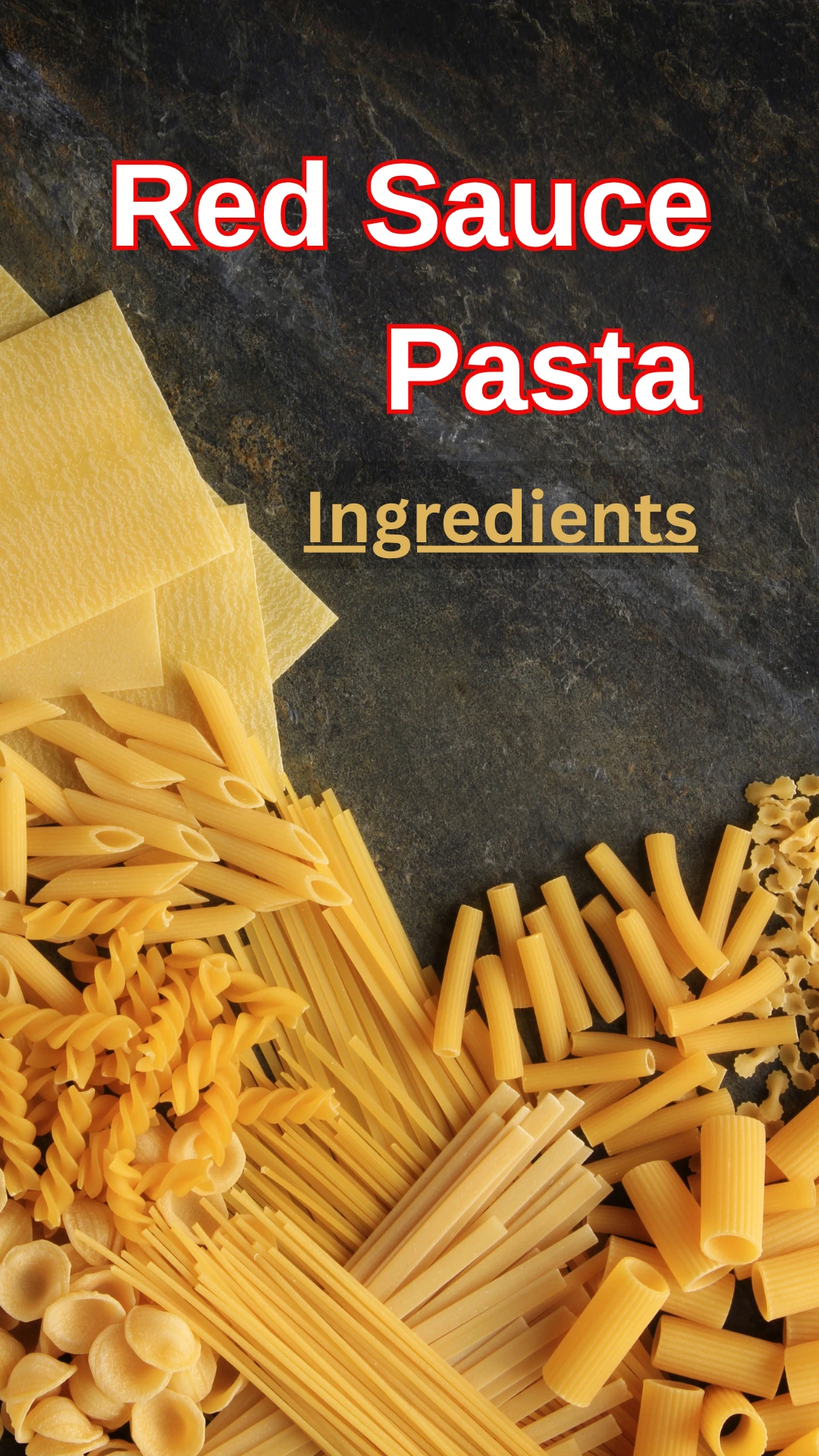 Pasta, tomatoes, onion, garlic, olive oil, chilli flakes, oregano, salt, pepper, tomato ketchup, cheese (optional).